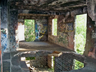 Despite the fact that it has been designated as an historical site in 1998 by the Pennsylvania Historical and Museum Commission, locals frequently use Concrete City for paint ball games or parties as evidenced by the numerous paint balls and beer cans scattered about the grounds. Graffiti covers all of the buildings throughout the entire abandoned community.