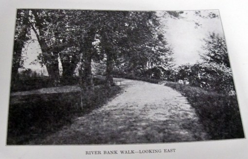 “The foundation has already been laid for a band stand to be located in the midst of the beautiful shade trees forming the grove near the bend of the river. “—Kirby Day Book